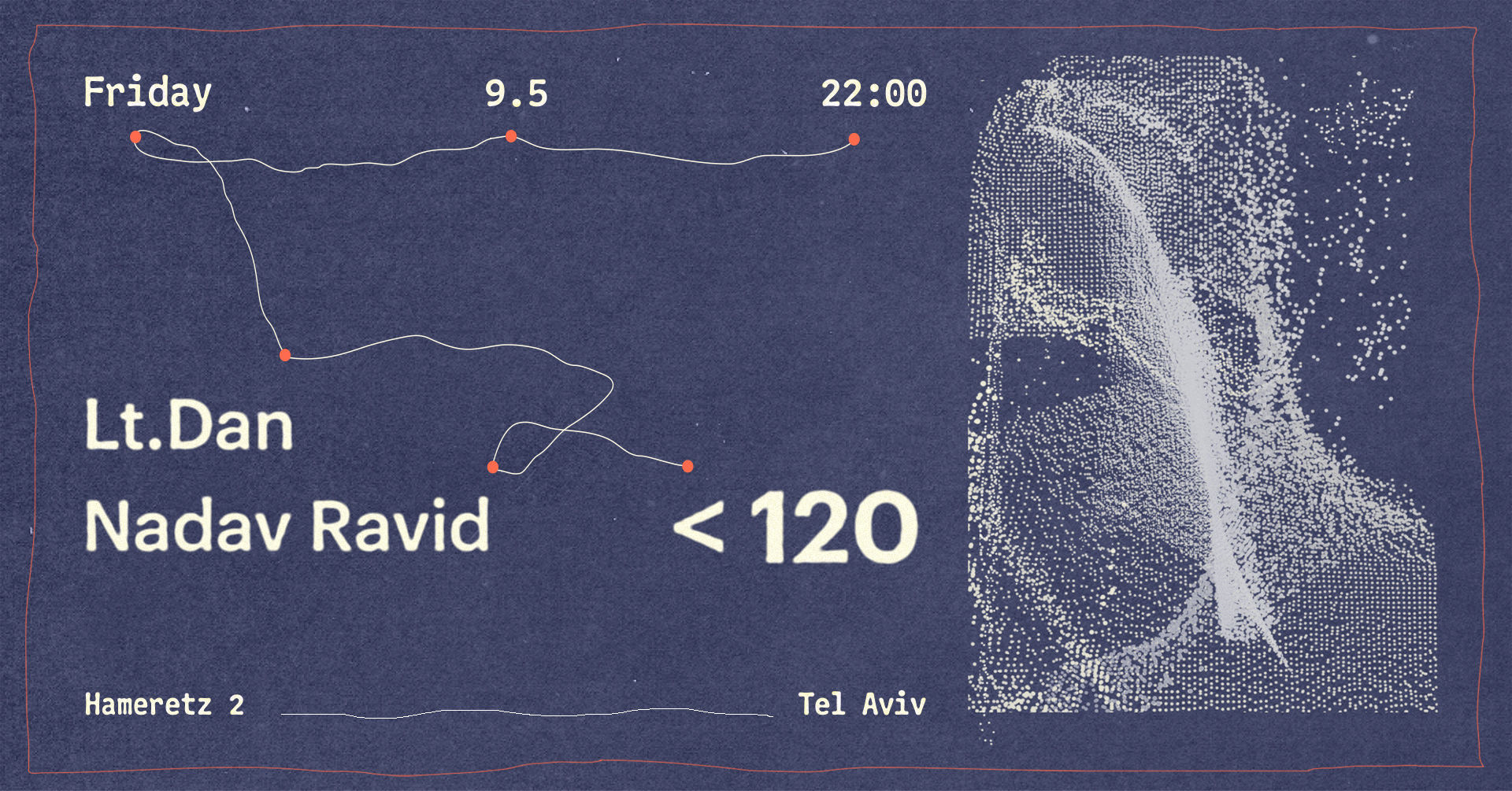Created marketing materials for a music event by producer duo Nadav Ravid and dan.lt, known as 120. The event’s concept focused on playing tracks strictly under 120 BPM. I also designed the